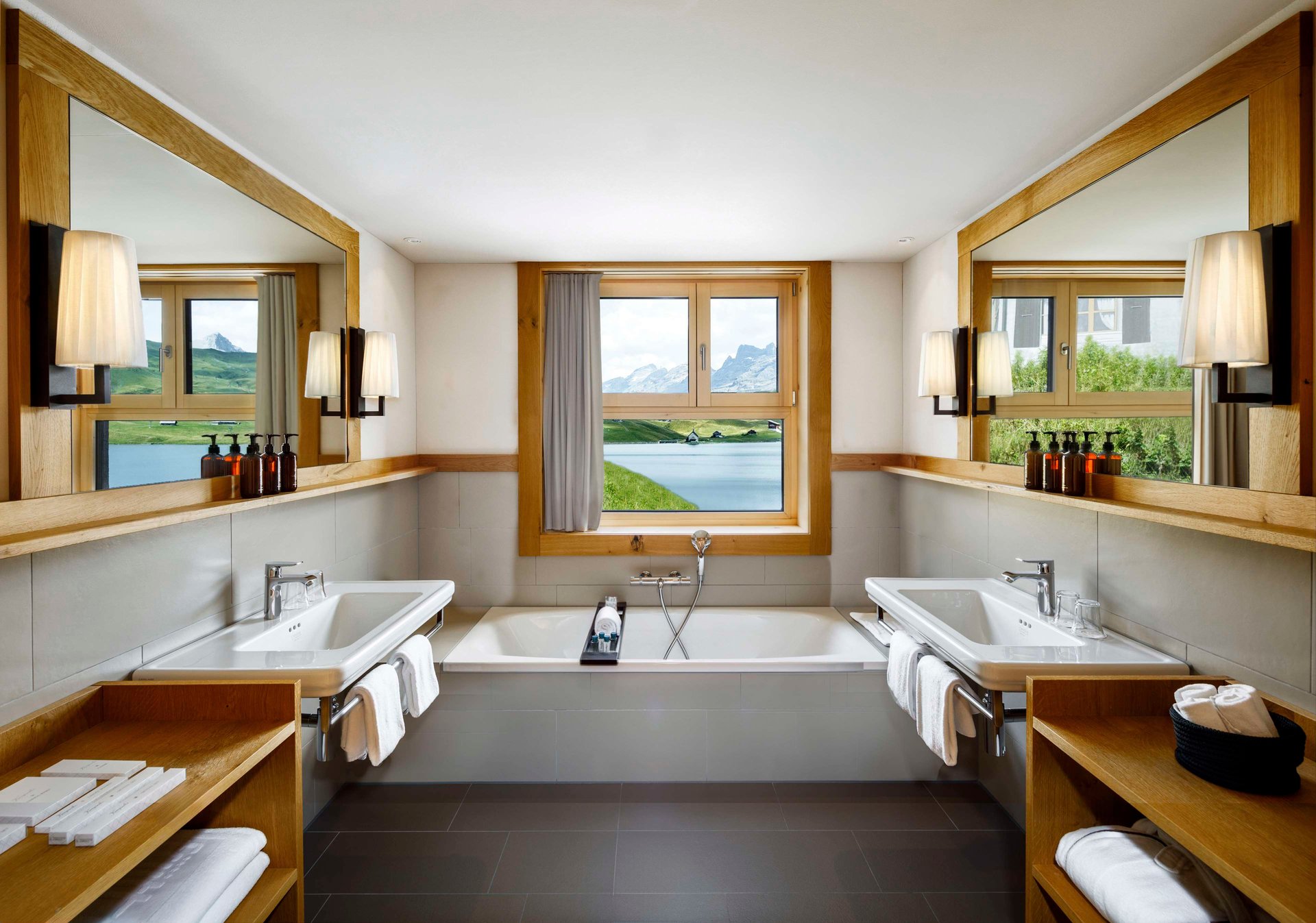 Ihre Familiensuite mit Seeblick befindet sich in der Lago Lodge und verfügt über 1 Kingsize-Bett und ein separates Wohnzimmer mit Schlafsofas. Im modernen alpinen Stil eingerichtet, verfügt sie über einen Flachbildfernseher, kostenloses WLAN, einen Kühlschrank und einen Safe, eine separate Badewanne und eine begehbare Dusche. Platz für bis zu 6 Gästen (inkl. Kleinkinder und Babys), 76 m².